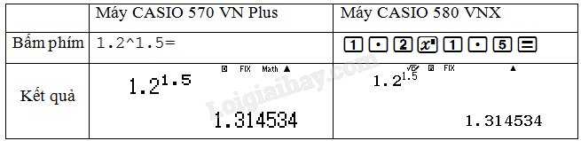 Sử dụng máy tính cầm tay, tính các luỹ thừa sau đây (làm tròn đến chữ số thập phân thứ sáu):