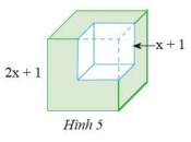 Từ một khối lập phương có cạnh bằng \(2x + 1\), ta cắt bỏ một khối lập phương có cạnh bằng \(x + 1\) (xem Hình 5). Tính thể tích phần còn lại, viết kết quả dưới dạng đa thức.
