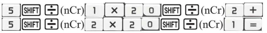 c) Để tính \(C_5^1C_{20}^2 + C_5^2C_{20}^1\) thì ta ấn liên tiếp các phím