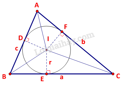 Kí hiệu: D,E, F lần lượt là hình chiếu của I trên AB, BC, AC.
