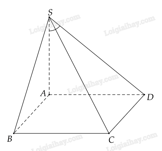 Vậy góc giữa \(SD\) và \(\left( {SAB} \right)\) là góc giữa \(SA\) và \(SD\) là góc giữa \(\widehat {DSA}\)