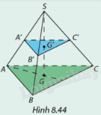 Cho hình chóp tam giác đều S.ABC. Gọi A’, B’, C’ lần lượt là trung điểm của các cạnh SA, SB, SC (Hình 8,44).