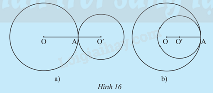 Trường hợp 2: (O;R) và (O’;R’) chỉ có 1 điểm chung (Hình 16).