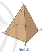 Hình 22 là hình ảnh của một hộp quà lưu niệm có dạng hình chóp tứ giác đều S.ABCD. Quan sát Hình 22 và trả lời các câu hỏi: