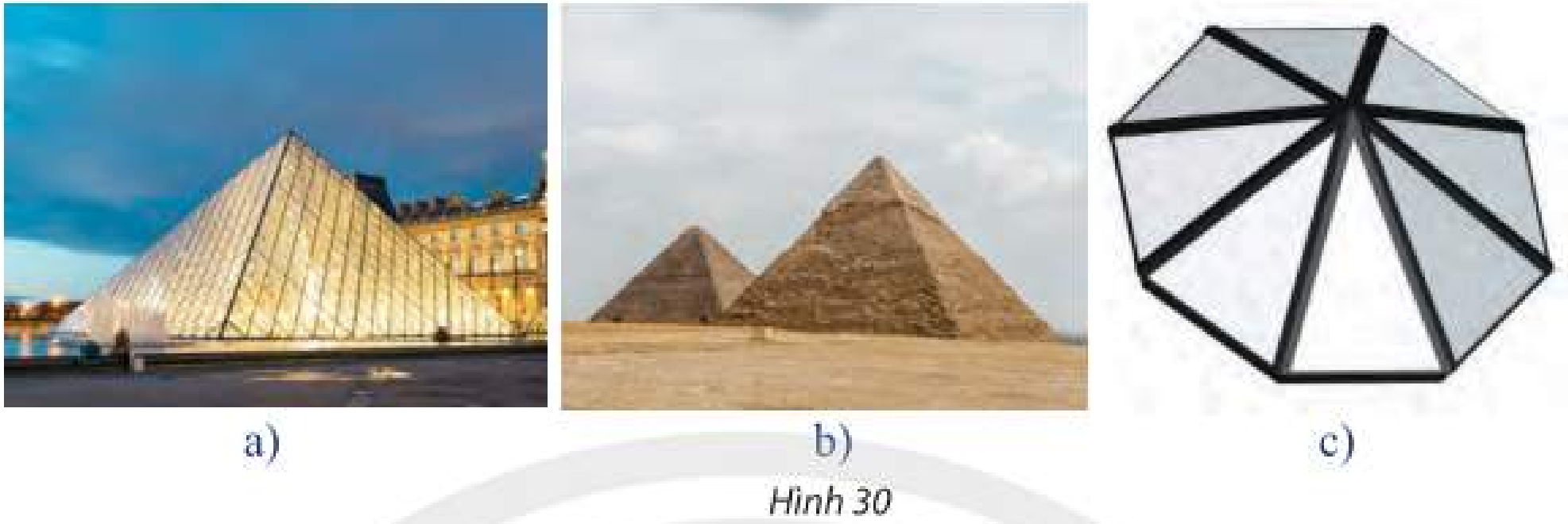 a) Các công trình kiến trúc, đồ vật trong Hình 30 có mặt bên là hình tam giác.