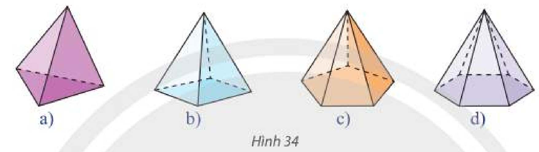 Trong Hình 34, hình chóp nào có số mặt ít nhất?