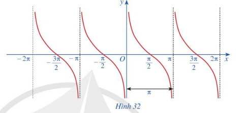 Quan sát đồ thị hàm số \(y = \cot x\) ở Hình 32.
