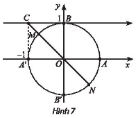 Trên đường tròn lượng giác hai điểm M và N biểu diễn các góc lượng giác có số đo góc x thỏa mãn \(cotx =  – 1\).