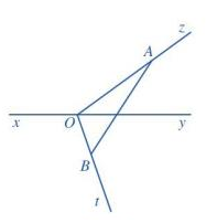 a) Lấy điểm A bất kì trên tia Oz (A khác O), lấy điểm B bất kì trên tia Ot (B khác O), vẽ đoạn thẳng AB.