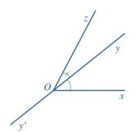 c) Hai tia Ox và Oz nằm về hai phía của đường thẳng yy’