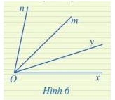 Ở Hình 6, hai góc xOy và mOn có phải là hai góc kề nhau hay không? Vì sao?