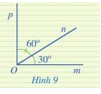Ở Hình 9, hai góc mOn và pOn có là hai góc kề nhau hay không? Tính số đo của góc mOp.