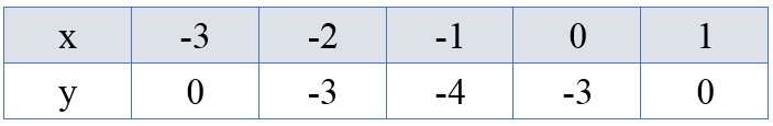 \(y = {\left( { – 1} \right)^2} + 2.\left( { – 1} \right) – 3 =  – 4\). Điền \( – 4\) vào ô tương ứng.