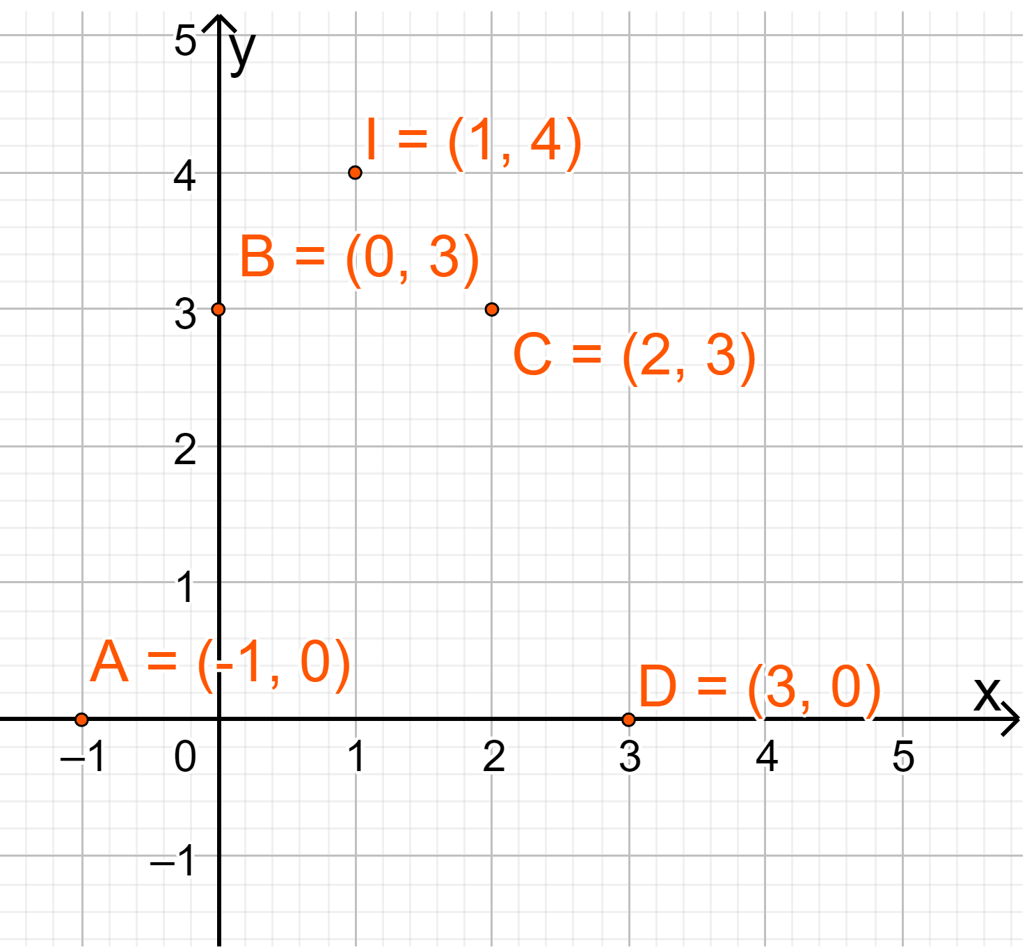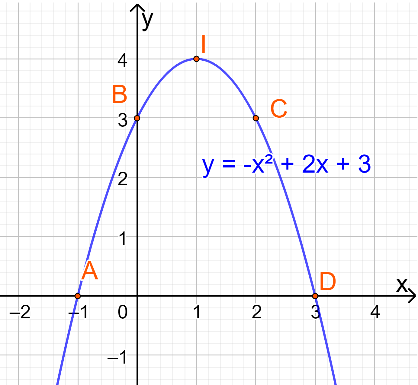 lần lượt là: A(-1;0), B(0;3), I(1;4), C(2;3), D(3;0)