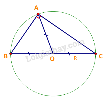 Gọi O là trung điểm của BC. Khi đó: \(OA = OB = OC = \frac{1}{2}BC\)