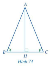Cho tam giác ABC thỏa mãn \(\widehat B = \widehat C\). Kẻ AH vuông góc với BC, H thuộc BC (Hình 74).