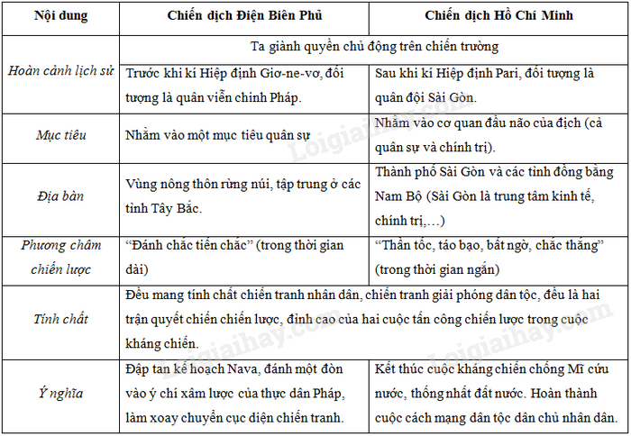 3. Mở rộng: So sánh chiến dịch Điện Biên Phủ và chiến dịch Hồ Chí Minh