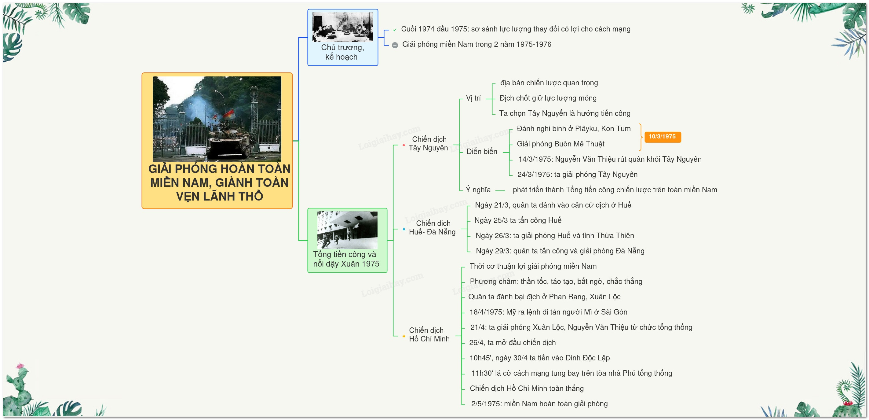 Sơ đồ tưu duy Giải phóng hoàn toàn miền Nam, giành toàn vẹn lãnh thổ Tổ quốc