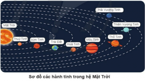 Chỉ và nói tên các hành tinh trong hệ Mặt Trời ở sơ đồ dưới đây. Từ Mặt Trời ra xa dần, Trái Đất là hành tinh thứ mấy.