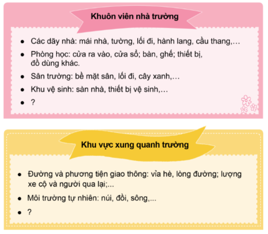 2. Hãy cho biết, em cần khảo sát những gì về sự an toàn của trường học theo gợi ý sau:
