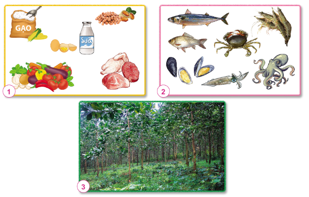 Em quan sát hình và kể tên các sản phẩm của hoạt động sản xuất nông nghiệp mà em quan sát được.