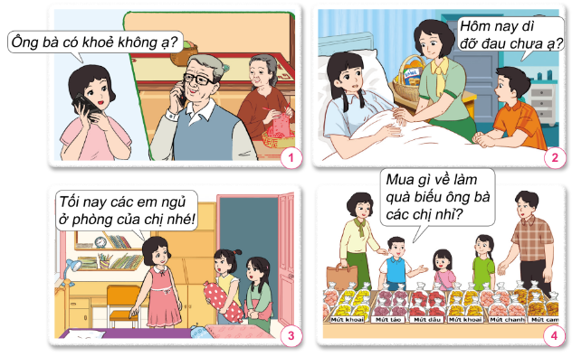 Hình 1: Hà gọi điện hỏi thăm sức khỏe của ông bà.
