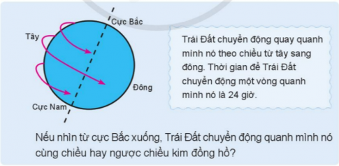 Nếu nhìn từ cực Bắc xuống, Trái Đất chuyển động quanh mình nó ngược chiều kim đồng hồ.
