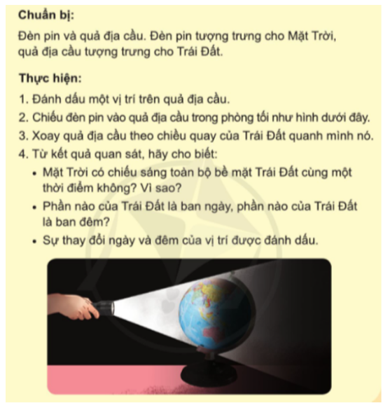 – Mặt Trời không chiếu sáng toàn bộ bề mặt Trái Đất cùng một thời điểm. Vì Trái Đất có dạng hình cầu.