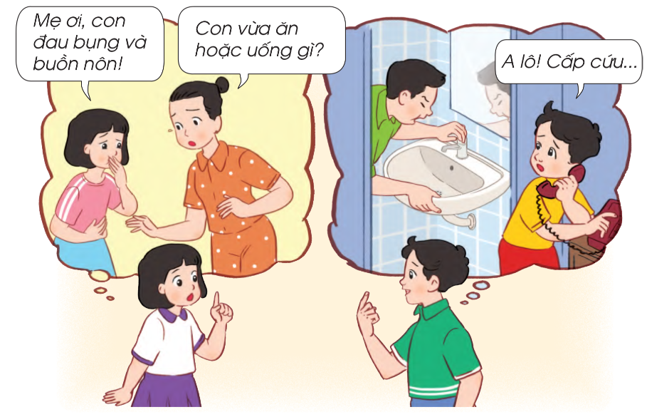 Khi bản thân hoặc người nhà bị ngộ độc qua đường ăn uống, em sẽ: