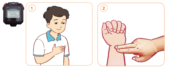 1. Đặt tay lên ngực trái của mình (hình 1), đếm nhịp đập của tim trong một phút.