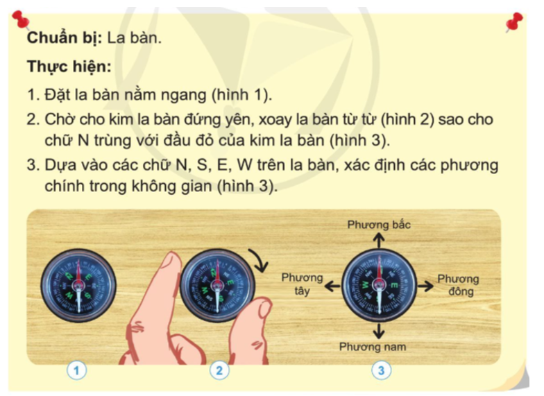 Em dựa vào gợi ý đề bài tiến hành xác định các phương chính bằng la bàn.