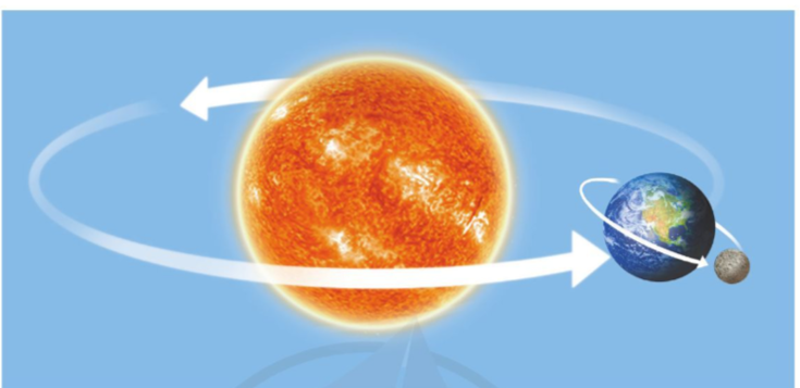 – Chiều chuyển động của Trái Đất quanh Mặt Trời: Trái Đất chuyển động quanh Mặt Trời theo chiều từ Tây sang Đông trên quỹ đạo theo một đường gần tròn. Trái Đất chuyển động một vòng quanh Mặt Trời trên quỹ đạo hết một năm.