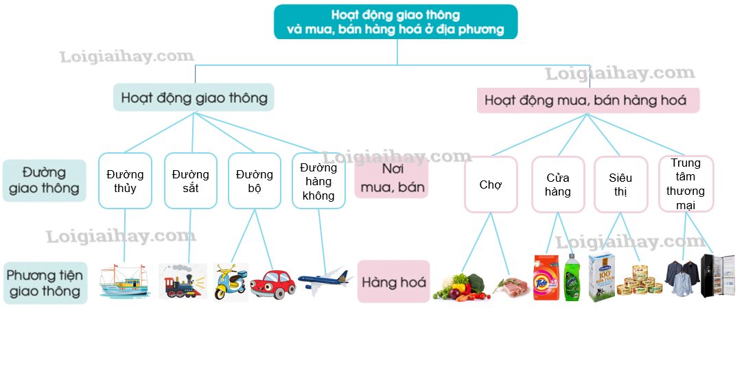 Giới thiệu về hoạt động giao thông và hoạt động mua, bán hàng hóa ở địa phương em theo gợi ý dưới đây và chia sẻ với các bạn.