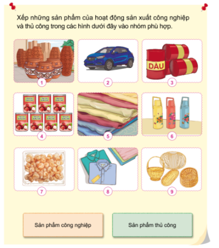 – Sản phẩm thủ công: hình 1, 5, 9.