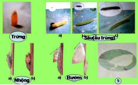 Hãy chỉ đâu là : trứng, sâu (ấu trùng), nhộng, bướm