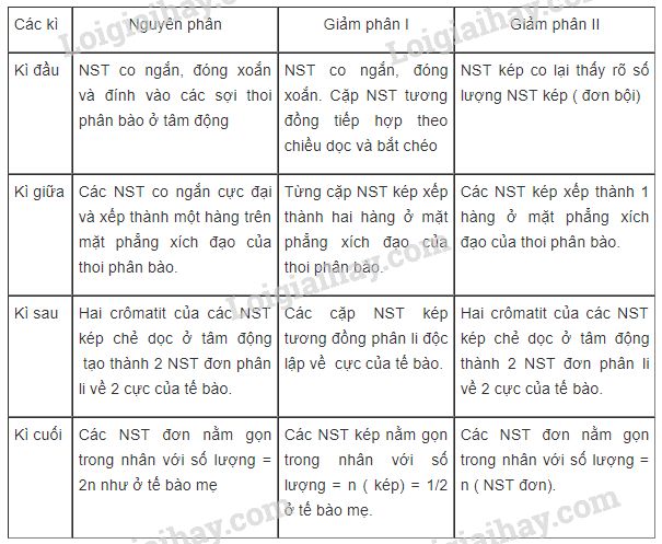 Xem lại Những diễn biến cơ bản của NST qua các kì trong nguyên phân, giảm phân Igiảm phân II
