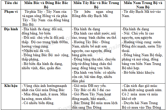 – Xem lại lý thuyết phần Các miền địa lí tự nhiên.