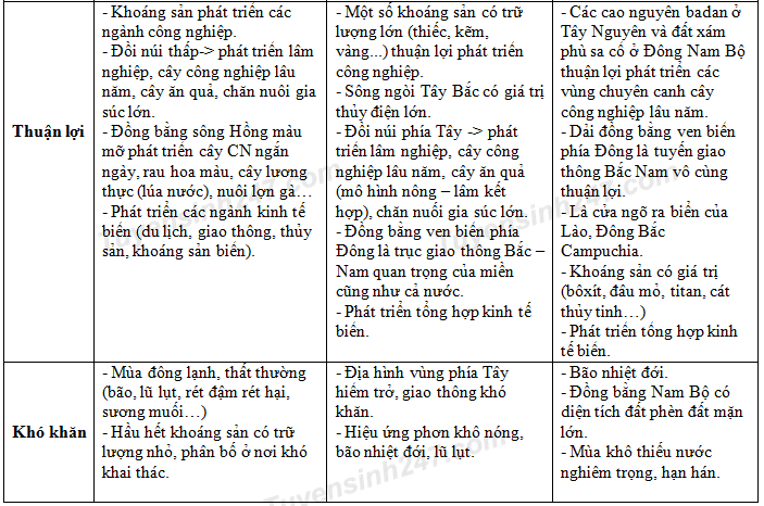 Hãy nêu đặc điểm của mỗi miền địa lí tự nhiên. Những thuận lợi và khó khăn trong việc sử dụng tự nhiên mỗi miền.