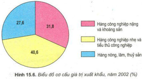 Hãy nhận xét biểu đồ hình 15.6 và kể tên các mặt hàng xuất khẩu chủ lực của nước ta mà em biết.