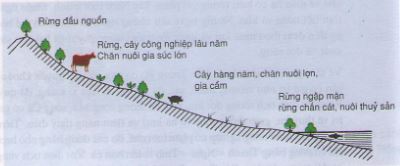Hình 35.1.Lát cắt từ Tây sang Đông thể hiện cơ cấu nông- lâm –ngư nghiệp của vùng