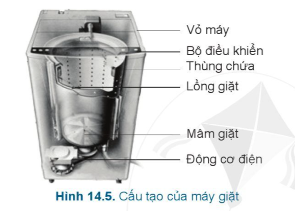 Quan sát Hình 14.5, nêu tên và chức năng các bộ phận cấu tạo nên máy giặt