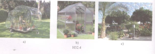 Hình H32.4 mô tả một số loại nhà kính trồng cây trái, hoa quả nhiệt đới ở xứ lanh.