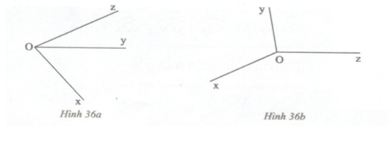 Hình 36b) \(\widehat {xOy} = {110^0};\widehat {yOz} = {100^0};\widehat {xOz} = {150^0}.\)