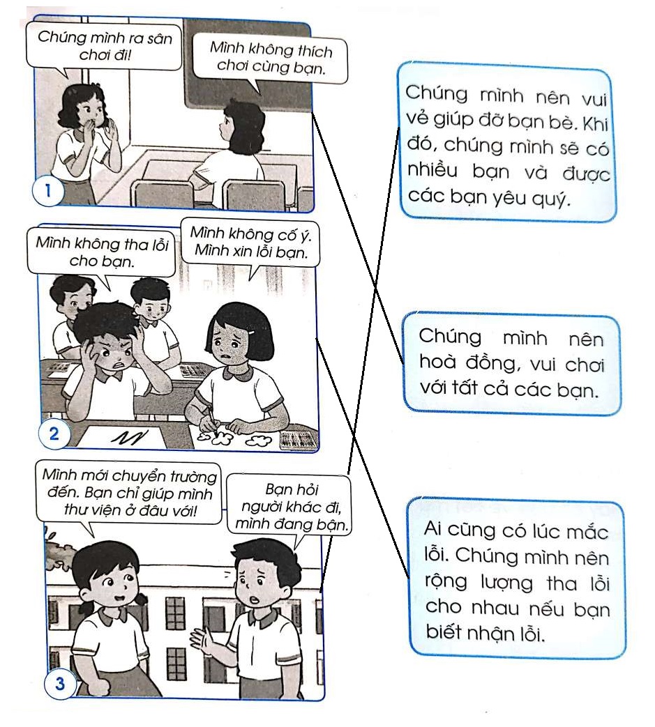 – Nếu là em, em sẽ giải quyết tình huống ấy như thế nào để thể hiện sự thân thiện, rộng lượng?