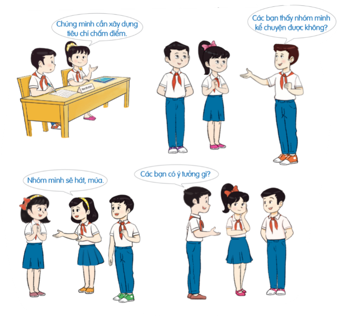 – Phần đạo cụ chuẩn bị cho cuộc thi kể chuyện về thầy cô được giao cho các bạn nam trong lớp chuẩn bị.