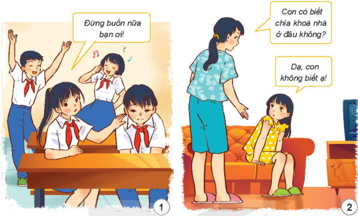 + Hình 1: là trường hợp giao tiếp chưa phù hợp. Vì khi bạn đang buồn chúng ta nên ở bên cạnh an ủi, chia sẻ nỗi buồn với bạn chứ không nên đùa cợt, hát hò trêu trọc bạn.
