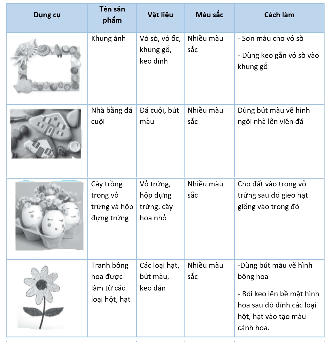 Em hãy nêu hiểu biết của mình về các sản phẩm sáng tạo từ vật liệu thiên nhiên trong những hình dưới đây: