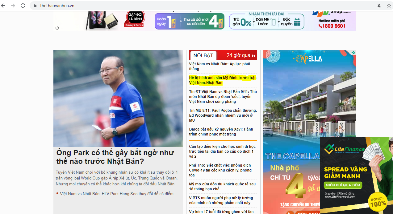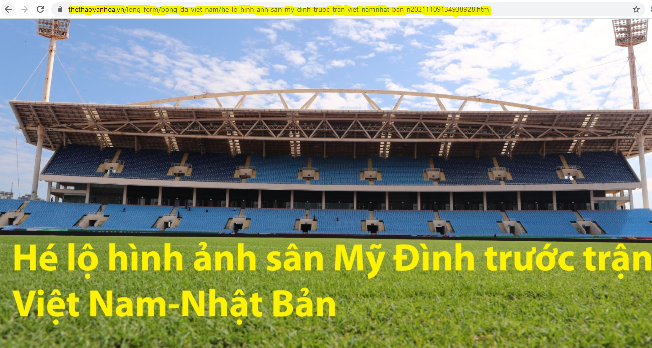 Bước 3: Truy cập một tin thể thao em muốn xem (Ví dụ: Hé lộ hình ảnh sân Mỹ Đình trước trận Việt Nam – Nhật Bản).