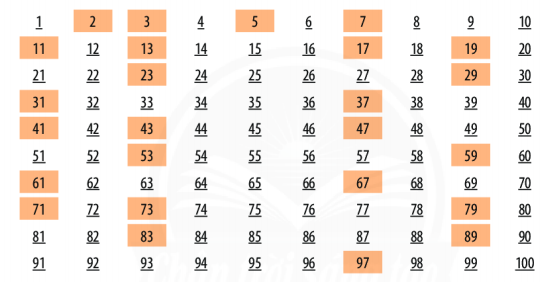 Số nguyên tố lớn nhất trong phạm vi 100 là số 97.