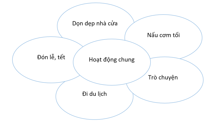 Hãy điền vào bông hoa những hoạt động chung em đã tham gia cùng gia đình